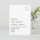 Laissez-vous séduire par l'élégance intemporelle de notre faire-part de mariage minimaliste noir et blanc. Doté d'un design moderne élégant, d'un script de calligraphie chic et d'un monogramme élégant situé en haut à droite. Combinez la tradition et l'innovation en intégrant un code QR à l'arrière pour une RSVP pratique. Votre journée spéciale commence par une touche simple mais sophistiquée.