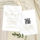 Mariage moderne Qr Code Or Blanc. Ajoutez votre code QR à votre site Web mariage au verso afin que vos invités puissent RSVP et voir tous les détails en ligne sans avoir besoin de pièces jointes séparées. Une typographie informelle en or pour le titre principal du Mariage De compléter le reste du texte que vous pouvez facilement personnaliser.