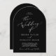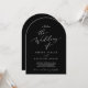 Cette délicate faire-part de mariage en arc de cercle noir QR code noir foncé est parfaite pour un mariage moderne. Le design moody présente une belle et élégante typographie blanche sur un arrière - plan noir au look sophistiqué. Économisez du papier en incluant un code QR pour votre invité afin d'afficher les détails, RSVP ou les deux.