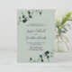 Faire-part de réception de mariage avec code QR, vert sauge et feuillage d'eucalyptus... Notre faire-part de réception de mariage botanique vert sauge présente de élégantes branches d'eucalyptus avec des feuilles de sauge et de couleur émeraude créant une bordure d'aspect naturel pour le texte de l'invitation à l'intérieur. Le dos de la carte en vert sauge contient l'URL de votre site web de mariage et un exemple de graphique de code QR que vous pouvez facilement remplacer par vos propres informations en même temps que vous révisez le texte. Tout le texte d'exemple peut être facilement révisé avec vos propres détails sur le modèle de personnalisation. Cette invitation de réception de style moderne a été conçue pour être à la fois élégante et économique en temps, créée spécialement pour les futures mariées occupées.