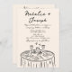 Ce faire-part de mariage est parfait pour votre mariage si vous cherchez une invitation QR Code unique et facile à éditer.Une élégante crème minimaliste simple et unique et une invitation modèle mariage dessinée à la main noire. Ce qui présente de l'arrière - plan vintage crémeux à l'avant et de la vaisselle dessinée à la main des assiettes et des verres à cocktails. Et les prénoms de la mariée et du marié en noir gras écrit à la main fantaisiste. et des informations modifiables. Avec des lunettes de Champagne dessinées à la main tour sur le dos et code QR personnalisable afin que vos invitations puissent RSVP en ligne. Abordable et il est aussi numérique électronique e-invitation si vous voulez l'envoyer par texte ou e-mail. Toutes les informations sont personnalisables en cliquant sur le bouton personnaliser. Alors attrapez-le et faites-le vous pour que vous fassiez de vous des invitations engagés et enthousiasmés.