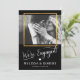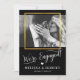 Cartes d'annonce de fiançailles élégantes, raffinées et modernes. Couleurs noir et blanc avec un cadre en faux or. Petit cœur. Lettres manuscrites en typographie script. Le RECTO de la carte comporte une photo/image et "NOUS SOMMES FIANCÉS" en lettres de typographie script. Parfait pour tout style de mariage, à tout moment de l'année. Cartes d'invitation faciles à modifier - personnalisez avec votre texte. Voir la collection.