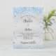 Arrière - plan à l'aspect argent faux décoré de coeurs bleus. Personnalisez et ajoutez vos noms et les détails du mariage. Lettres de couleur noire.