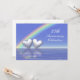Invitation d'anniversaire de 25 ans avec un arc-en-ciel et deux cœurs argentés brillants flottant sur l'eau bleue. Personnalisez le texte de l'exemple au dos avec vos propres informations pour votre événement.