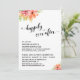 Voici un choix amusant et simple pour vos besoins de célébration d'après-mariage. Sur un fond blanc modifiable, j'ai placé de petites éclaboussures peintes de fleurs aquarelles et un graphique typographique qui dit "happily ever after" avec une police de caractères script élaborée et ornée de cœurs. En dessous, vos informations apparaissent dans une police simple en majuscules. Plus de fleurs et le mot "love" en script apparaissent au verso. Utilisez les champs du modèle pour ajouter vos propres informations et cliquez pour personnaliser davantage si vous souhaitez apporter d'autres modifications. Toutes les couches sont déverrouillées pour vous permettre de contrôler le positionnement et la taille comme vous le souhaitez.
