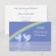 Invitation pour le 60e anniversaire de mariage avec un arc-en-ciel dans un ciel bleu clair et deux cœurs de diamant brillants flottant sur l'eau. Personnalisez le texte au dos avec vos propres informations pour votre événement.