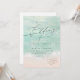 Beau turquoise abstraite aquarelle scintillante vague d'océan et les coeurs dans l'arrière - plan de plage de sable, surmonté d'un script élégant et d'élégante police serif, moderne et simple. Grand faire-part de mariage pour le mariage nautique de plage, mariage de destination tropicale, mariage sur le thème de l'océan côtier en été.
