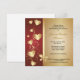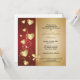Une élégante invitation de fête de 50e anniversaire avec une bordure gauche de cœurs et de volutes dorés sur fond bordeaux avec un nœud doré. La zone de texte est un dégradé doré.