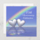 Invitation argentée pour le 25e anniversaire avec un arc-en-ciel et deux cœurs argentés brillants flottant sur l'eau bleue. Personnalisez le texte de l'exemple au dos avec vos propres informations pour votre événement.
