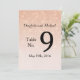 Des cœurs éparpillés subtils tombent sur cette délicate carte de numéro de table rose poussiéreux dans un dégradé de style "ombre". Cet article fait partie de la collection de mariage Scattered Hearts Dusty Rose. Personnalisez-le avec les détails de votre mariage en sélectionnant le bouton "Personnaliser" et en modifiant le texte d'exemple affiché dans le modèle à droite de votre écran. Vous pouvez changer les polices et les tailles de police, ainsi que déplacer ou réorganiser le texte ou modifier la formulation pour répondre à vos besoins et à vos préférences.