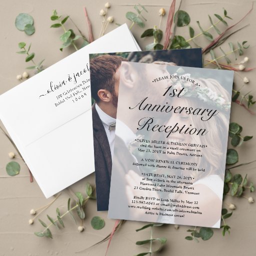 Si des circonstances imprévues ont entraîné le report de votre réception de mariage, le premier anniversaire est une occasion parfaite pour célébrer un an plus tard. Invitez famille et amis à une fête élégante et simple pour le 1er anniversaire avec cette invitation moderne et stylée en collage de 7 photos. Toutes les formulations sont faciles à personnaliser pour n'importe quel nombre d'années ou type d'événement, y compris une cérémonie de renouvellement de vœux, une fête après une fugue, une célébration de mariage en seconde noces, un cocktail ou un dîner. Personnalisez-la pour inclure les détails de votre choix, tels que la date du mariage, le code vestimentaire, la réponse, le site web, etc. (ASTUCE DE PLACEMENT D'IMAGE : Un moyen facile de centrer une photo exactement comme vous le souhaitez est de la rogner avant de la télécharger sur le site Zazzle.) Le design moderne minimaliste noir et blanc présente sept photos du couple de jeunes mariés, une calligraphie à l'écriture manuscrite tendance et une typographie élégante de style machine à écrire. Que vous ayez fait une fugue, organisé une minimonie ou un micro-mariage plus intime, ou que la