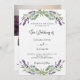 Un arrière - plan blanc décoré de fleurs de lavande et de verdure d'eucalyptus. Personnalisez et vos noms et détails. Retour : Ajoutez 4 photos et l'URL du site mariage au code QR pour plus de détails et/ou RSVP. Ne cochez pas "Logo & Independent Creator Mark"