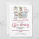 Une magnifique invitation à la fête de collecte de fonds matinale de café. Ce joli design comporte des piles d'aquarelle de tasses vintages et de typographie. Facile à customiser avec vos propres détails de collecte de fonds.