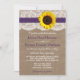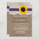 La collection de tournesol rustique est un design époustouflant avec un bel arrière - plan rustique effet burlap avec une coupe en dentelle vintage romantique finie par un superbe tournesol et ruban violet. Ces invitations peuvent être personnalisées pour votre occasion spéciale et feraient le faire-part parfait pour un mariage, douche nuptiale, fête de fiançailles, fête d'anniversaire et bien plus encore. *Veuillez noter que Zazzle ne vend que des invitations imprimées, de sorte que ces invitations n'ont pas de matériel de burlap, dentelle, tournesol ou ruban.