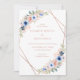 Moderne faire-part de mariage floral & géométrique. Dans les couleurs Rose-or, Pfirsich & Blau, Blanc.