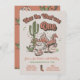 Regardez rétro gravure sur bois, invitations de fête d'anniversaire de cowboy "Comment l'Ouest était un". Caractéristiques graphiques éléments de cowboy western cactus, paysage désertique, cheval avec cactus. Couleurs marron, terre cuite, vert et blanc. Pour apporter d'autres modifications, accédez à Personnaliser ce modèle. En bas, vous verrez “Voulez-vous personnaliser encore plus ce design ? Cliquez sur le bouton MODIFIER à l'aide de l'outil de conception. À partir de là, vous pouvez modifier certaines polices et certaines couleurs, déplacer des éléments ou supprimer ce dont vous avez besoin.