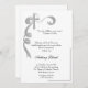 Cette conception douce d'invitation est parfaite pour la première sainte communion de votre enfant. Ce s'appelle Silver Ribbon avec la communion croisée argentée et a un arrière - plan blanc lumineux. Dans le coin gauche supérieur il y a un graphique argenté de ruban avec une croix argentée au centre de l'arc. Dans le coin inférieur droit il y a une frontière partielle argentée coordonnée pour accentuer votre texte. Changez juste le texte pour personnaliser votre invitation et vous êtes tous placez ! Grand pour tout office.