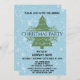 Célébrez la saison des Fêtes avec cette fête de Noël tourbillonnant fêtante vert foncé et fantaisie entreprise de sapins de Noël annuel invitation fête de Noël. Les détails de la fête sont écrits dans une élégante et audacieuse typographie de script noir à l'intérieur du sapin de Noël. L'arrière - plan de couleur bleu clair est décoré de taches de flocons blancs tombants. Cette invitation est parfaite pour des fêtes de vacances, de Noël ou d'hiver !