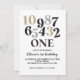 Nouvel An Eve compte en or, argent et noir invitation de premier anniversaire.