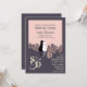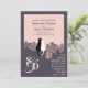 Faire-part de mariage à thème monogramme, avec élément chats et vue urbaine. Design de dessin, adapté aux annonces mariages, fiançailles pour les couples qui aiment leurs animaux de compagnie ou chats en général. Veuillez personnaliser les majuscules du monogramme et d'autres textes.