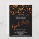 Orange et or type et confetti sur noir, remise de diplômes invitation carte postale. Style festif et moderne.