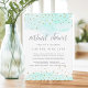 Les invitations chic à la nuptiale ou à la douche pour les célébrations virtuelles comprennent des lavages simples d'aquarelle vert menthe en haut et en bas avec une parties scintillant en faux or et une "douche nuptiale" en écriture calligraphique. Personnalisez avec vos coordonnées de bébé ou de nuptiale virtuelle sous un gris élégant, y compris le registre, l'adresse postale et les informations de collecte virtuelle (lien ou instructions sur la façon de vous joindre).