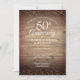 Avec des confettis délicats en poussière d'or sur un fond en panneaux de bois rustique. Personnalisez avec vos informations spéciales d'anniversaire de cinquante ans en or avec une typographie script chic et des confettis en poussière d'or au verso. Conçu par Thisisnotme