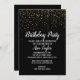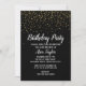 Invitation Confettis dorés sur une fête d'anniversaire noire