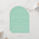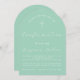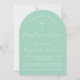 Une invitation de confirmation simple et moderne, en forme d'arc, sans distinction de genre. Il n'a que du texte blanc sur l'arrière - plan vert menthe. Dans la partie supérieure il y a une croix avec du texte voûté au-dessus. L'occasion et le nom sont écrits en script.