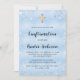 Pour une confirmation, célébrer un garçon. Un faux arrière - plan bleu à l'allure métallique. Décoré avec de la poussière de parties scintillant en faux bleu. Personnalisez et ajoutez le nom et les détails. Le nom et la confirmation sont écrits avec un script de style manuscrit