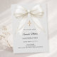 Invite guests with this sophisticated Confirmation invitation. The design features a luxurious ivory satin bow draped with delicate pearls and a shimmering gold cross set against a soft dove gray background. It is a beautiful choice for a young girl celebrating her Confirmation.