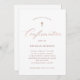 Ce design simple et élégant présente une calligraphie rose gold fausse élégante et un texte moderne sur un fond blanc croustillant. Une croix assortie rend cela parfait pour votre célébration de confirmation religieuse. Un style neutre qui convient parfaitement à une fille ou un garçon.