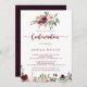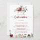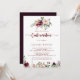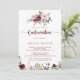 Cette invitation à la calligraphie florale d'été rustique est parfaite pour un simple événement religieux. Le design est composé de fleurs d'aquarelle bordeaux, roses et rousses avec des feuilles verts dans un arrière - plan verni brun.