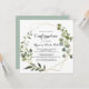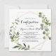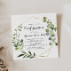 Cette invitation géométrique de calligraphie tropicale en or est parfaite pour un événement religieux simple. Le design présente de beaux feuilles verts peints à la main, ornant un cadre géométrique doré.
