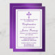 Métallique Violet Croix Sainte Communion Ou Invitations De Confirmation. Ces invitations peuvent être customisées pour n'importe quel événement saint, y compris les Confirmations, les Christenings, les Communes, les Baptêmes et bien plus encore. Ajoutez votre libellé personnalisé à l'aide de la section "Modifier ce modèle de conception" ou cliquez sur le bouton bleu "Customiser" pour modifier le style et la couleur de la police, ou pour ajouter une photo ou un texte supplémentaire à l'arrière de l'invitation.