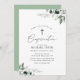 Une élégante invitation personnalisée modèle avec aquarelle verte feuillage. Le texte, la photo et les couleurs peuvent être modifiés.