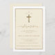 Une invitation à la confirmation élégante et chic de feuille d'or avec faux croix de feuille d'or et cadre géométrique avec une élégante bordure blanche. Ajoutez votre monogramme avec une police calligraphique luxueuse et florissante. Parfait pour une soirée simple, élégante et moderne. Si vous avez besoin d'un texte modifié et customisé n'hésitez pas à me contacter!