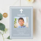 Arrière - plan bleu Dusty, décoré d'un cadre blanc, et d'une croix blanche Personnalisez et ajoutez un nom photo et des détails. Texte blanc.