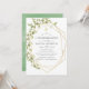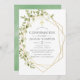 Invitation de confirmation feuille de sauge tendance vert et blanc aquarelle avec cadre géométrique or.