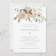 Cette simple et élégante invitation à la confirmation sainte présente un bouquet boho rustique de fleurs d'aquarelle et de verdure dans des tons neutres de terre pêche et d'ivoire, avec texte vert et une fausse croix d'or.