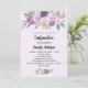 Arrière - plan violet, lavande aquarellé. Décoré de fleurs violettes et violettes aquarelles et verdure et d'une croix dorée. Personnalisez et ajoutez votre nom et vos coordonnées de réception.