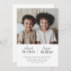Une invitation conjointe d'anniversaire moderne comportant votre propre photo et deux sections pour le nom et l'âge de chaque enfant.