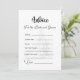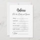 Voici "Conseil pour la mariée et la mariée", un jeu de douche de mariée tendre et sentimental conçu pour créer un gardien chéri pour le couple heureux. Plus qu'une simple source de divertissement, ce jeu offre un espace intime à la famille, aux amis et aux proches pour offrir leurs conseils sincères de manière sûre et non conflictuelle. Alors que la mariée et le marié se lancent dans leur voyage d'amour et de convivialité, ce jeu leur permet de collecter ces précieux messages, de les lire et de les revoir au fil des ans, ce qui en fait une partie précieuse de leur histoire d'amour. Chaque carte comporte l'élégante phrase "Conseil pour la mariée et le marié" dans une jolie police de caractères noirs, ajoutant une touche de sophistication à toute douche nuptiale, wedding shower, ou célébration mariage. L'arrière - plan est blanc immaculé, symbolisant la pureté de l'amour et la toile vierge sur laquelle commence leur voyage. Une robe mariage gracieuse orne la carte, rappelant le bel engagement du couple. Sous les rubriques "Toujours", "Parfois", "Jamais", "Ne pas oublier" et "Je vous souhaite les deux", les invités sont invités à inscrire leurs conseils, prêtant sagesse et meilleurs voeux au couple. Les cartes culminent avec le mot "amour" en bas, où les invités peuvent signer leurs noms, faisant de chaque carte un signe sincère d'affection et de soutien. Qu'il s'agisse d'une impression professionnelle à la maison, "Conseil pour la mariée et la mariée" devient un souvenir inestimable, capturant l'essence de l'amour et les voeux sincères de ceux qui sont le plus proches du couple. Au fil des ans, ces messages sincères seront un précieux rappel de l'amour et du soutien indéfectibles qui entourent le couple le jour de leur mariage. Avec "Conseil pour la mariée et la mariée", vous pouvez créer un moment intime et touchant pendant la douche nuptiale ou le mariage, permettant à des proches d'express leurs conseils et bénédictions sincères pour le couple. Ce jeu favorise le sens de la convivialité et sert de témoignage de l'amour qui lie le couple et ses proches. Faites des célébrations mariages vraiment spéciales et significatives avec "Conseil pour la mariée et la mariée".