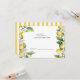 La "Squeeze Principale | Watercolor Lemon Mediterranean Tile Fête des mariées Conseils for the Bride Card" est une carte magnifiquement conçue qui est parfaite pour une douche nuptiale à thème citron. Avec des citrons d'aquarelle vibrants, une verdure élégante et un motif de tuiles méditerranéennes aux tons bleu et jaune doux, cette carte ajoute une touche d'élégance et de joie à la célébration. Conçu par CaMiDesigns, il peut être facilement et rapidement personnalisé avec vos détails. Pour toute commande, expédition, informations sur le produit et toute autre assistance, veuillez contacter directement le service à la clientèle de Zazzle.