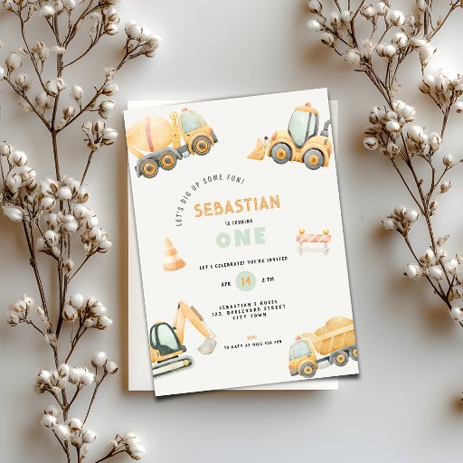 Invitation Construction Dump Truck Party Boy First Birthday