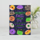 Cette invitation à la fête d'Halloween cool et mignonne est parfaite pour un événement amusant et doux. Il présente des beignes d'illustration de citrouille de lanterne jack o', de fantôme, d'araignée, de maïs bonbon, de monstre et de globe oculaire sur des confettis de parties scintillant étincelante et de typographie de parties scintillant avec un simple arrière - plan bleu marine. Il inclut également la citation, "Trick or traiter. Tu ne veux pas rater ça !" Les couleurs sont le vert, le violet, le jaune, l'orange, le marron, le rouge, le noir et le blanc. C'est ludique, unique, drôle et moderne. Profitez de ce design dessiné à la main par l'artiste de La Femme, Rachel Matheney. ***REMARQUE IMPORTANTE DE CONCEPTION : Pour toute demande de conception personnalisée comme les demandes de produit correspondant, les changements de couleur, les changements de placement ou toute autre demande de modification, veuillez cliquer sur le bouton "Message" ou envoyer un courriel au concepteur directement à lafemme.art@gmail.com. Vous pouvez même lui envoyer par courriel une demande pour un design entièrement personnalisé et nouveau.