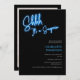Chut, c'est une surprise ! Cool neon bleu script rétro noir photo Sweet 16 neon invitation anniversaire.