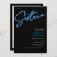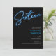 Invitation Cool neon bleu script rétro noir photo Sweet 16