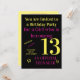 Cool Vous avez 13 ans - Carte d'invitation officielle pour l'anniversaire d'une adolescente. Coloré en jaune et rose. Personnalisez-le avec vos propres informations.