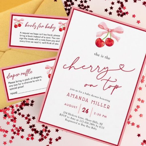 Fêtez l'arrivée de votre petit avec notre charmant cerise sur l'invitation du baby shower ! Décorée avec de délicieuses illustrations de cerises et des couleurs vives, cette invitation donne un ton joyeux à votre réunion spéciale. Parfaitement conçu pour capturer la douceur de l'occasion, il invitation des amis et de la famille à rejoindre dans le plaisir et les festivités. Rendez votre baby shower inoubliable avec cette invitation fantaisiste et attrayante qui promet de faire sourire et d'émotion à tous vos invités!